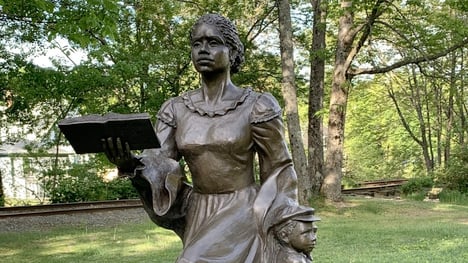Harriet E. Wilson was born a free person of color in 1825 but family circumstances led to her becoming an indentured servant from age 7 until age 18. Wilson published her novel in 1859 but it did not become widely known until its rediscovery in 1982 by Harvard scholar Henry Louis Gates, Jr. Members of the Harriet Wilson Project in Milford erected a statue by artist Fern Cunningham commemorating Wilson in 2006.