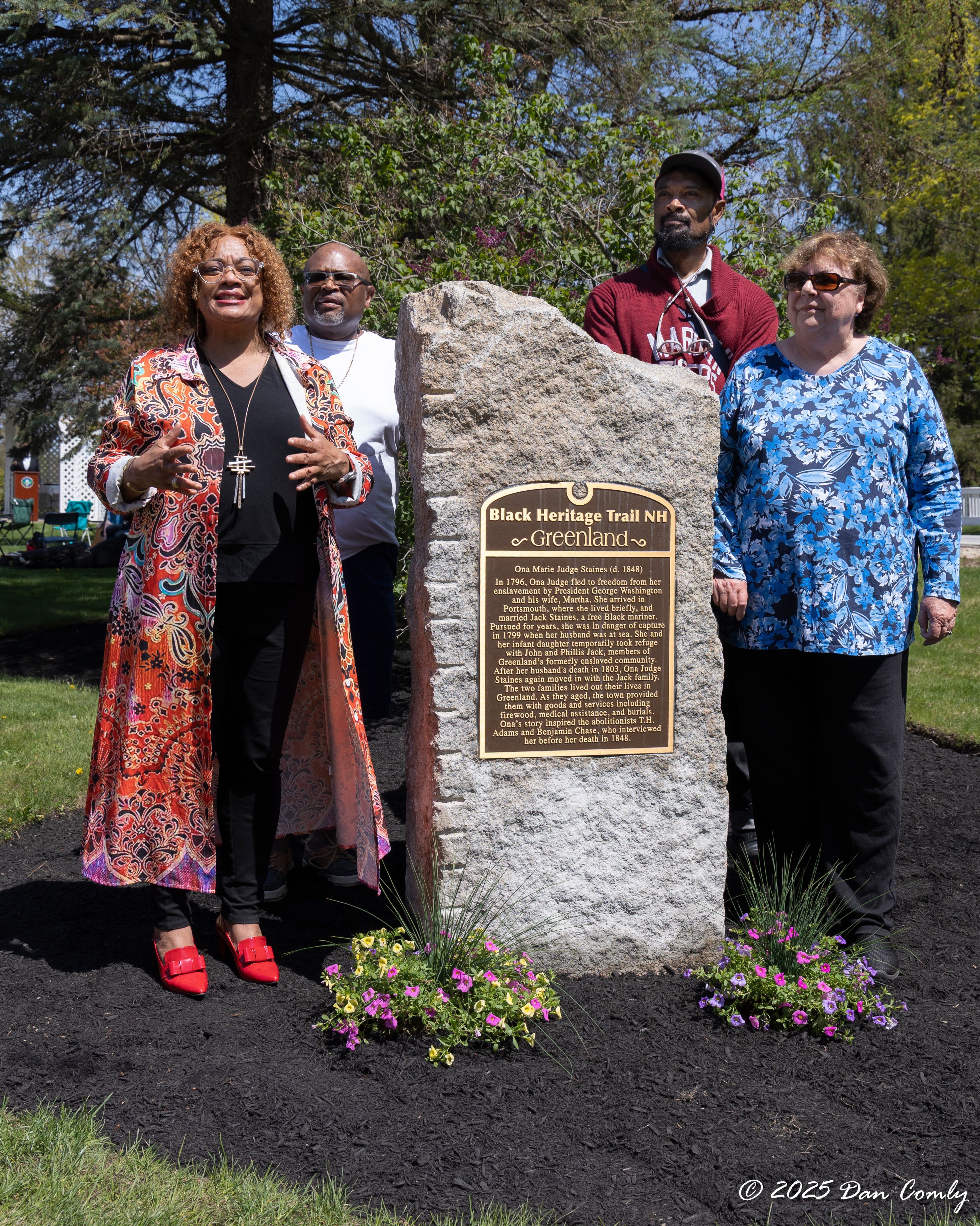 In 1796, Ona Judge fled to freedom from her enslavement by President George Washington and his wife, Martha. She arrived in Portsmouth, where she lived briefly, and married Jack Staines, a free Black Mariner. Pursued for years, she was in danger of capture in 1799 when her husband was at sea. She and her infant daughter temporarily took refuge with John and Phillis Jack, members of Greenland’s formerly enslaved community. After her husband’s death in 1903, Ona Judge Staines again moved in with the Jack Family. The two families lived out their lives in Greenland. As they aged, the town provided them with goods and services including firewood, medical assistance, and burials. Ona’s story inspired the abolitionists T.H. Adams and Benjamin Chase, who interviewed her before her death in 1848.