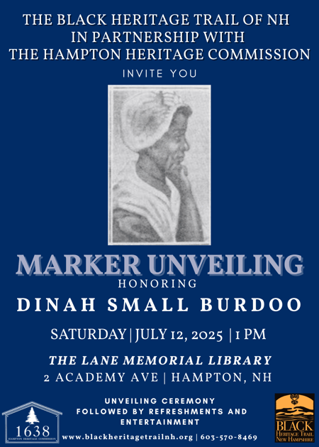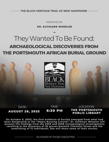 Last year, we proudly unveiled the Valerie Cunningham Historic Marker, honoring the incredible contributions of our founder, a historian and preservationist, whose vision shaped the Black Heritage Trail of New Hampshire. On September 18th at 5pm, join us at the Seacoast African American Cultural Center as we come together to honor her lifetime of dedication, scholarship, and leadership in preserving and sharing African American history in New Hampshire. This is more than an installation: it’s a celebration of resilience, vision, and community.